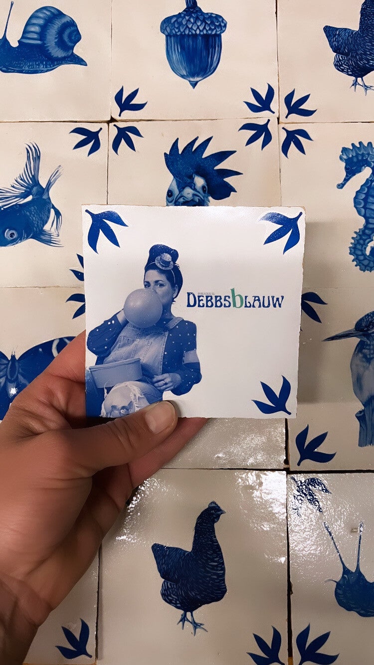 DEBBSBLAUW tegeltje met de afbeelding van een slak in mooie blauwe kleur. Het origineel is getekend met grafietpotlood.