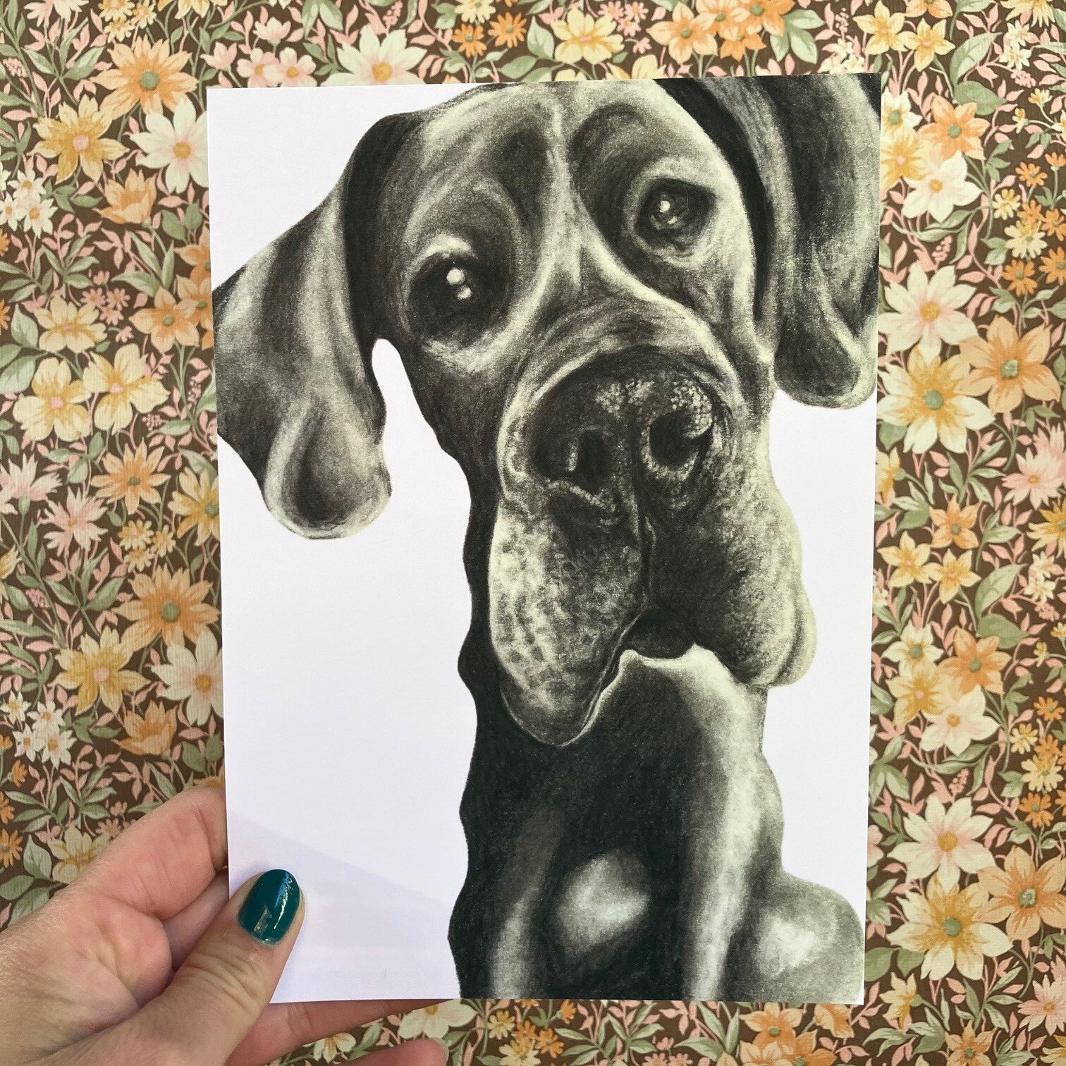 Mooie reproductie met matte afwerking. De print is een afbeelding van een hond genaamd Nelson waarvan het origineel getekend is met grafietpotlood.